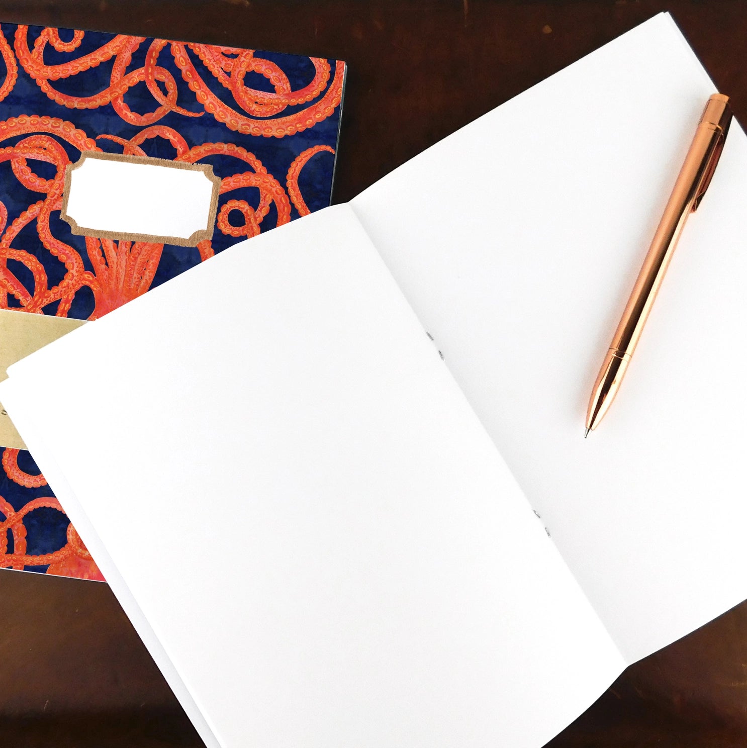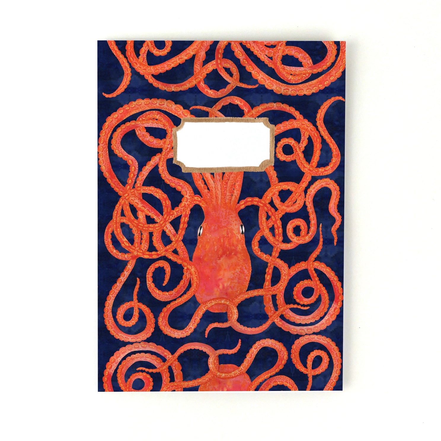 A modern take on vintage exercise books, this notebook features a hand painted Octopus design.